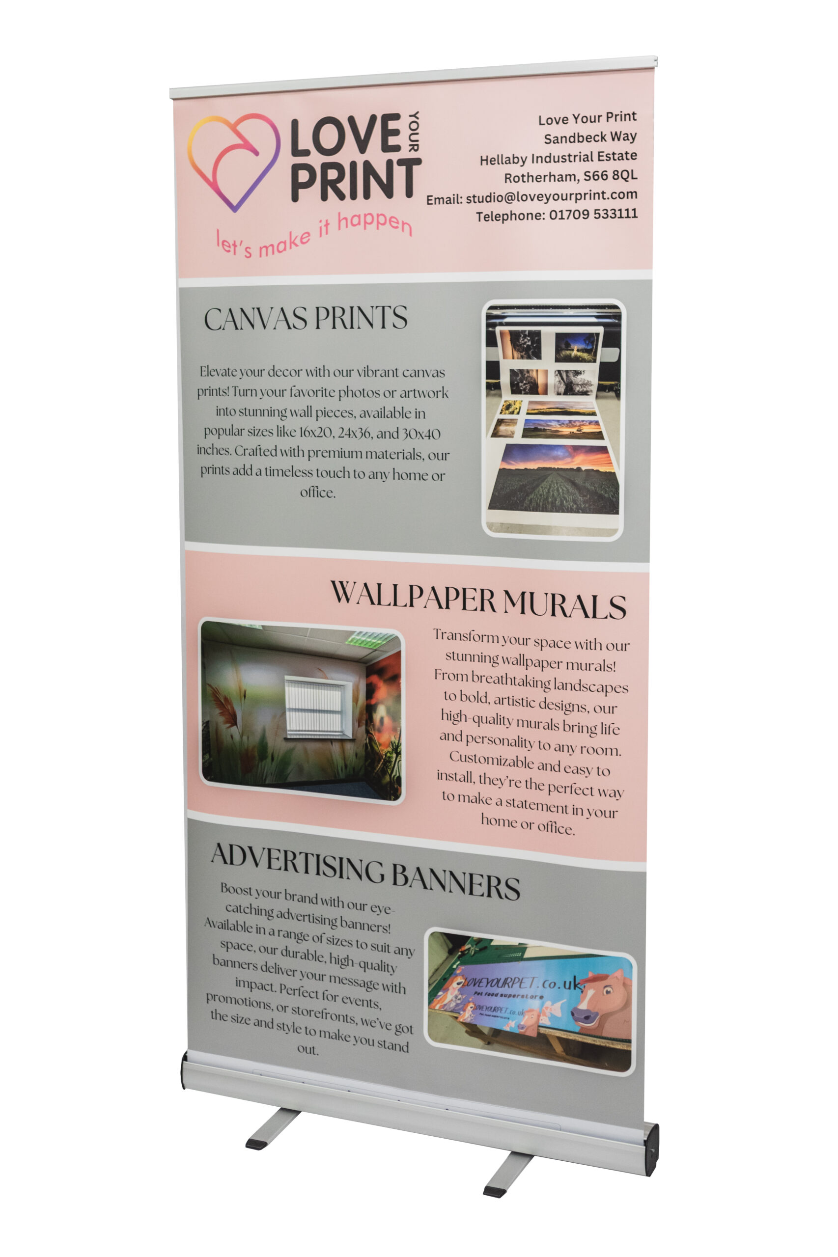 Material: Aluminium stand with snap top rail