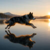 Grace, speed, and stillness meet in the breathtaking Borzoi on Ice Wallpaper. This cinematic mural captures the rare moment of a Borzoi mid-sprint across a glassy frozen lake, perfectly mirrored by the icy surface below. Set against snow-covered mountains and a tranquil evergreen forest, it brings a crisp, serene beauty to any room — ideal for nature lovers, dog enthusiasts, or anyone who finds peace in the wild.