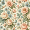 Coral Garden Glow celebrates vibrant summer blossoms with expressive watercolor petals in sunset-coral hues against a deep teal ground. Each bloom appears softly diffused, as if painted wet-on-wet, while verdant leaves weave rhythmically throughout. The rich contrast makes this pattern a striking statement for dining rooms, accent niches, or hospitality lounges craving colour and energy.