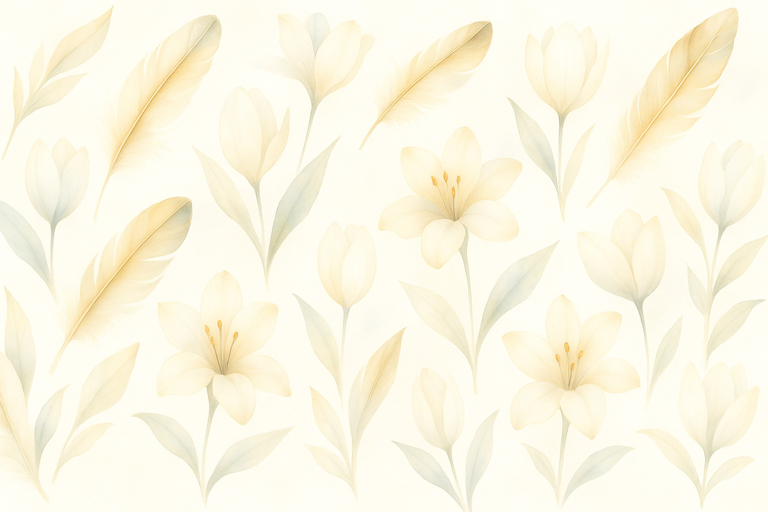Feathered Petals – Cream Floral & Feather Watercolor Wallpaper