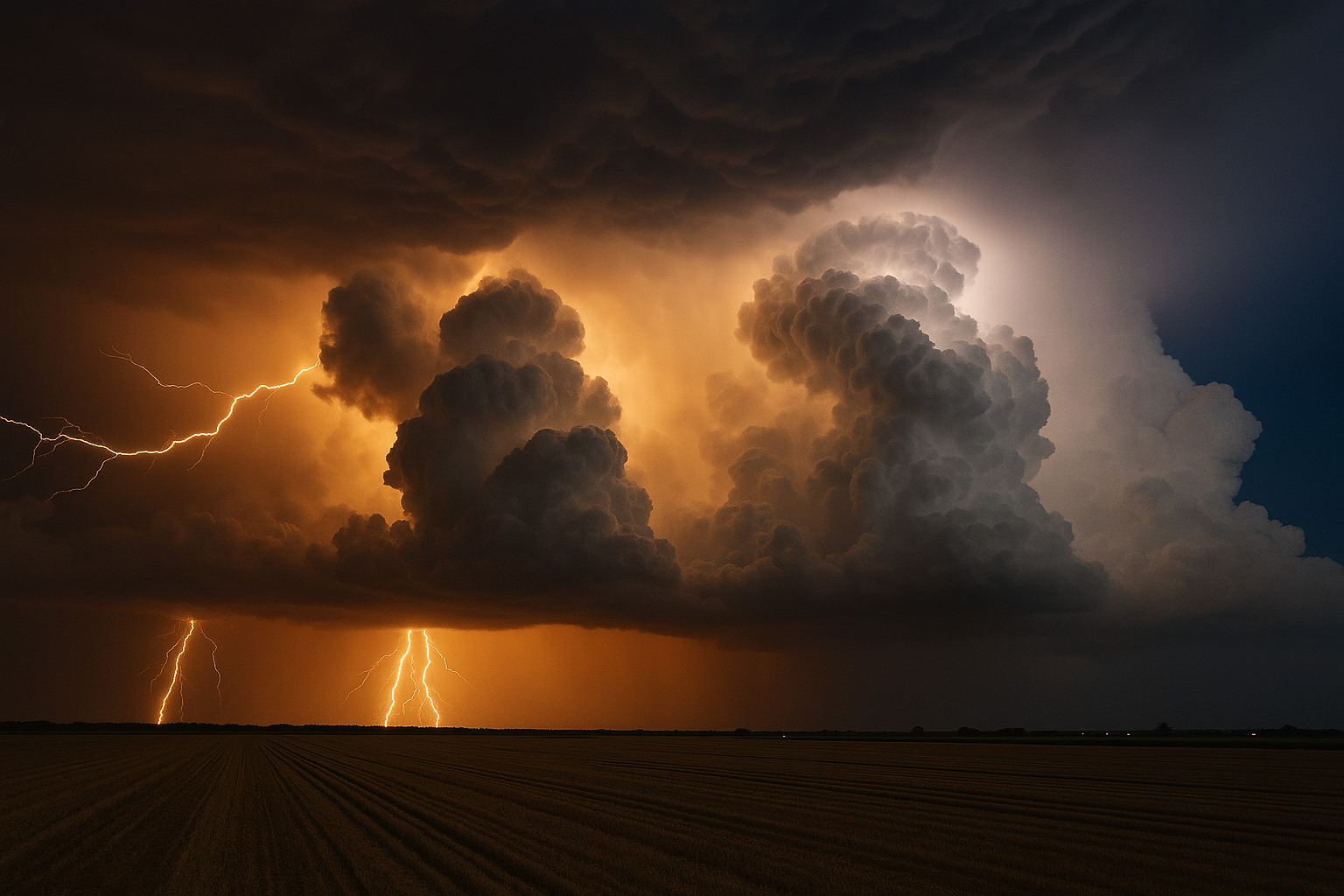 🌌 Dramatic Dual Lighting – Day-to-night gradient across the storm cell