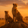 Unleash the thrill of motion with Savannah Velocity – a powerful mural capturing two cheetahs mid-sprint across the golden plains of Africa. Framed by soft acacia silhouettes and the warm light of a setting sun, this mural radiates energy, elegance, and the untamed essence of speed in the wild.