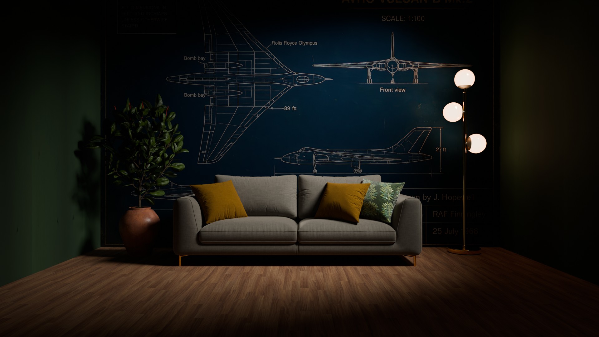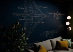 Forget your generic “feature wall.” This is a statement. A tribute to British aviation at its cold war peak. The Avro Vulcan B Mk.2—drawn with precision, scaled at 1:100, and wrapped in nostalgia—is now your wall.